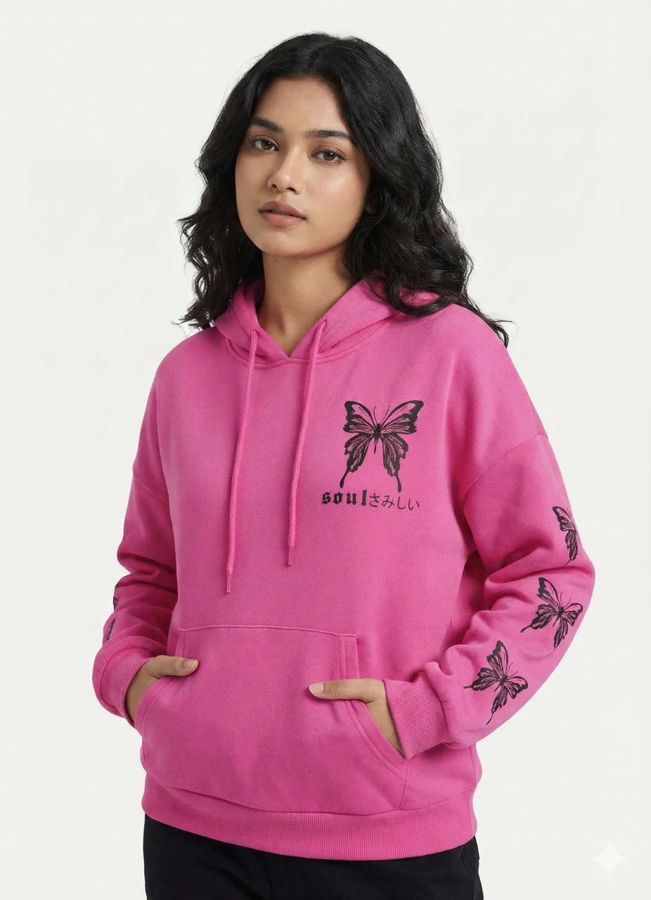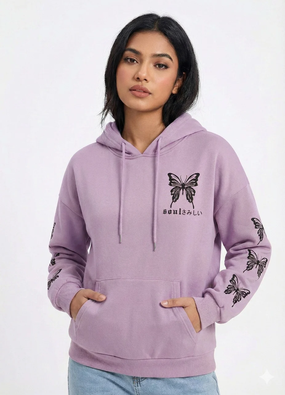 Butterfly Design Girls Hoodie – 320 GSM (Lavender, Beige, Pink, Black)